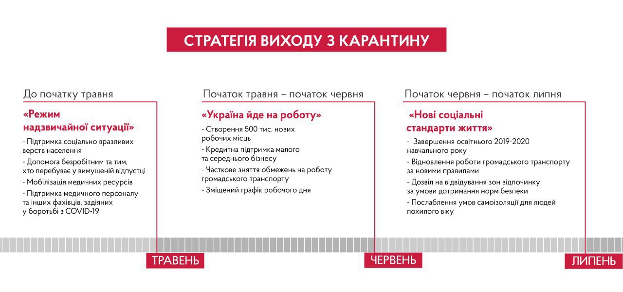 У своєму Telegram-каналі прем'єр також опублікував інфографіку з планами виходу України з карантину.