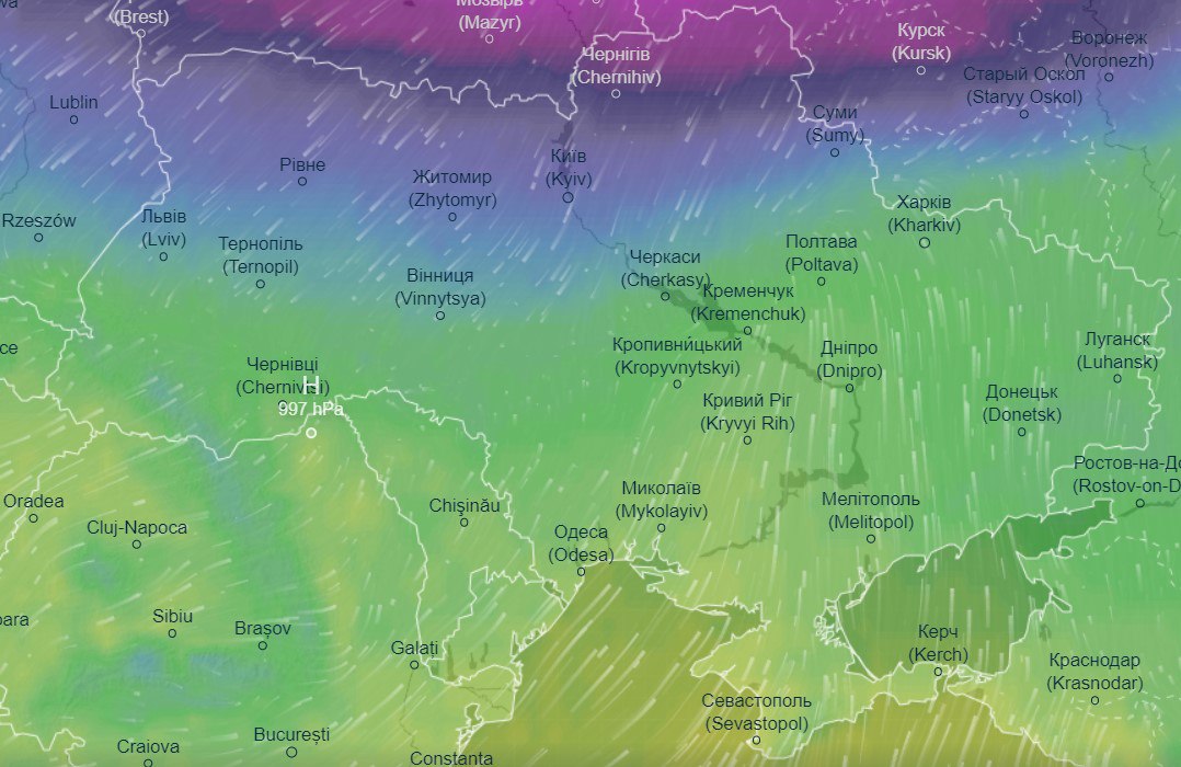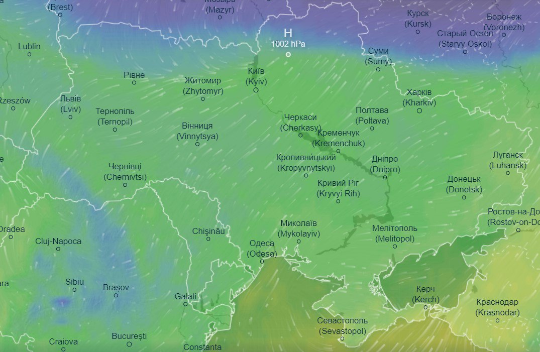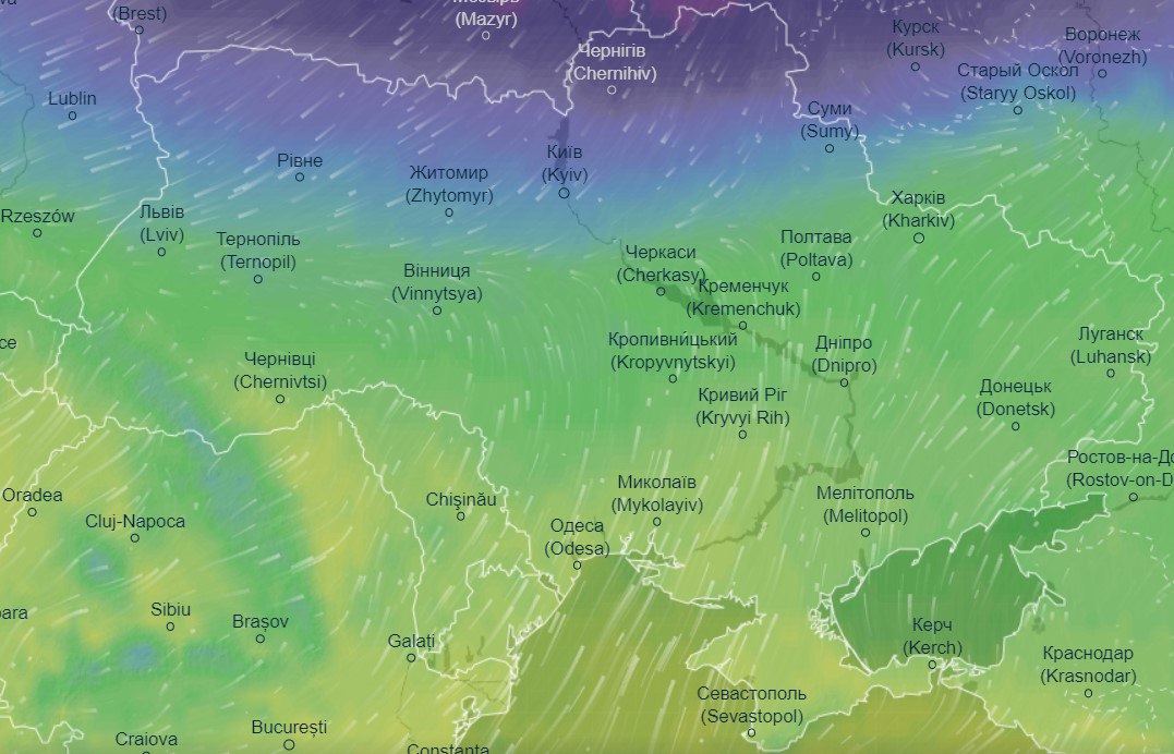 Про це свідчать дані сервісу моніторингу погоди Ventusky.