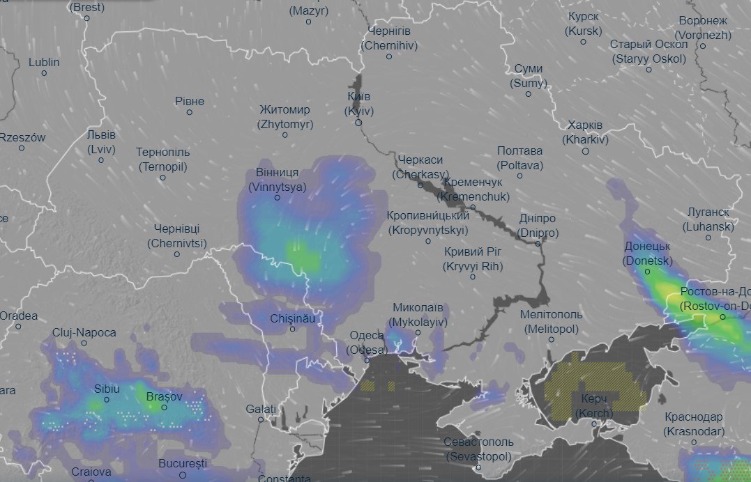 Вдень вона зменшиться у розмірах, в основному залишившись у Вінницькій області, але її осередки ще нагадуватимуть про негоду у Миколаївській та Донецькій областях.