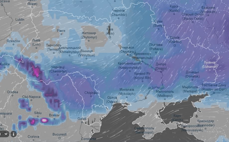 Про це свідчать дані метеосайту Ventusky.