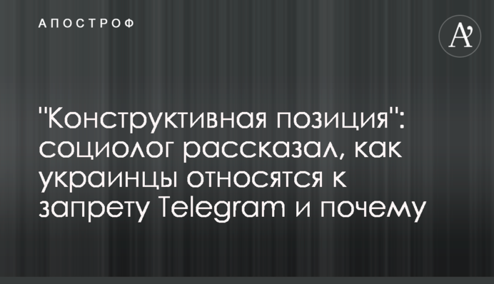 "Наразі в суспільства немає ані відчутної підтримки заборони Телеграм, ані стійкого опору такій забороні. Українці обіймають доволі виважену і конструктивну позицію, що варто не доходити до заборон, але при цьому дійсно визнають важливість і потребу блокувати небезпечні телеграм-канали", - зазначив соціолог.