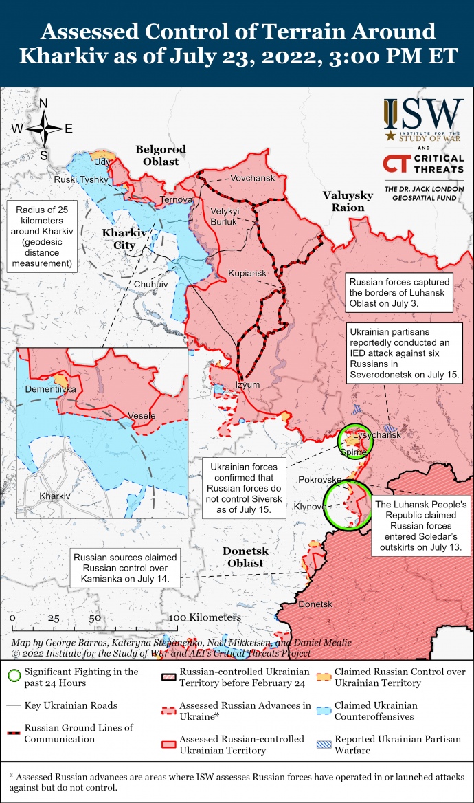 - Українські сили, ймовірно, готуються розпочати або вже розпочали контрнаступ у Херсонській області.