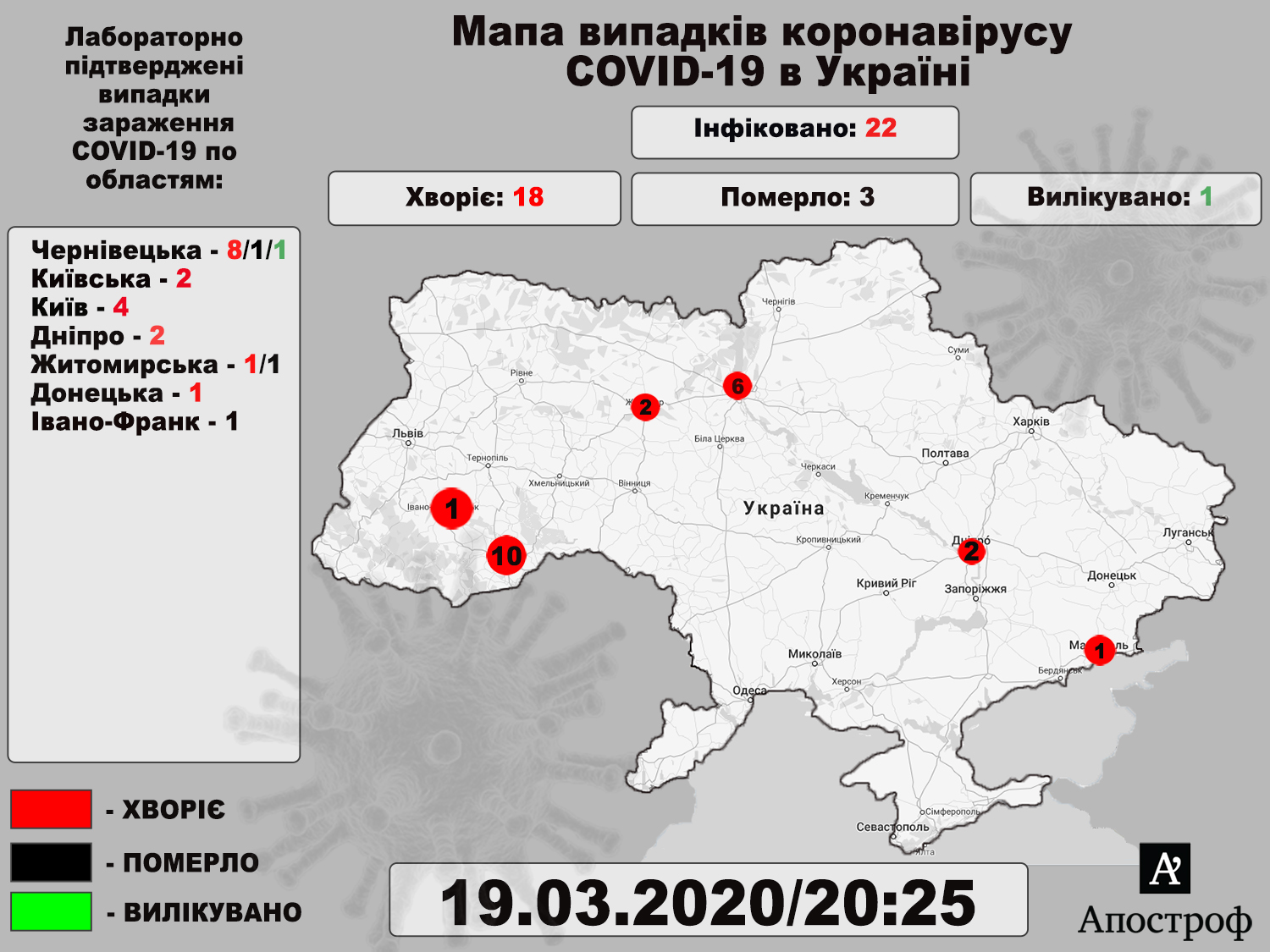 picture Мапа розповсюдження коронавірусу в УкраїніФото: Апостроф