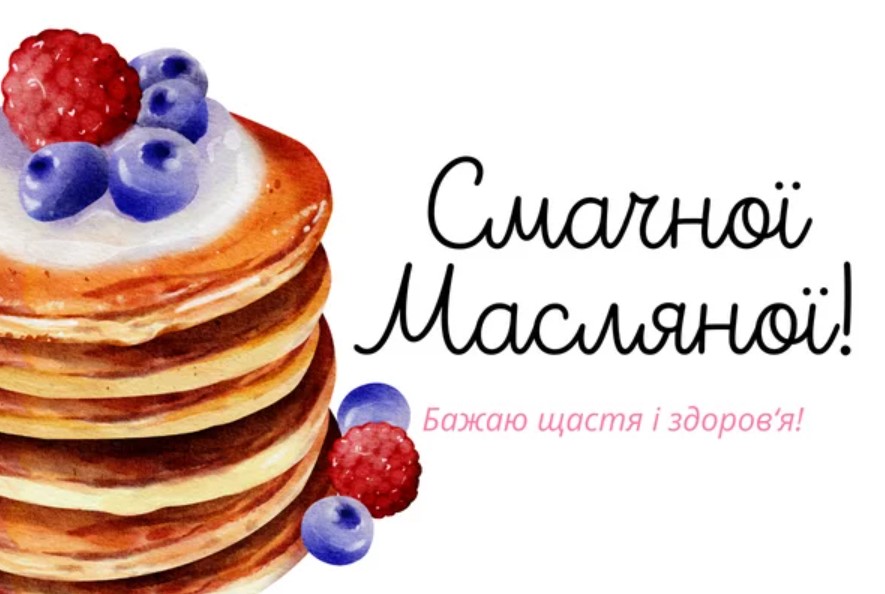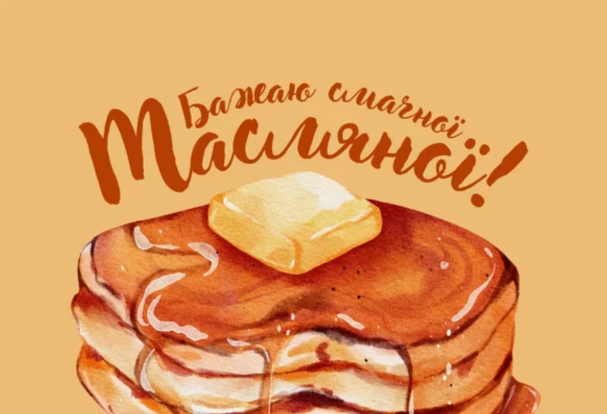Вітаю з Масляною! Нехай твоє життя буде яскравим і солодким, як мед, любов – гарячою, як свіжоспечений млинець, а матеріальний добробут – жирним, як домашня сметанка. Зі святом!