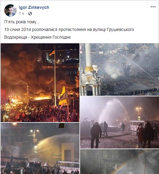 "П"ять років тому... 19 січня 2014 розпочалися протистояння на вулиці Грушевського. Водохреща - Хрещення Господнє", - написав він.