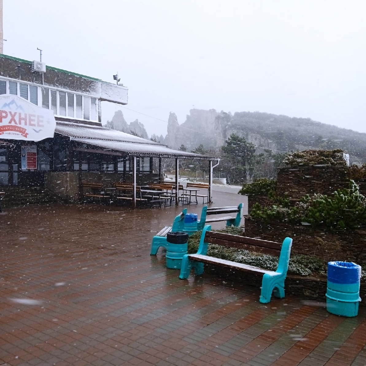 Так, на плато кримської гори Ай-Петрі температура повітря становить два градуси тепла. Сніг уже покрив даху будівель і дерева, місцями навіть ліг на землю. Про це повідомляє сайт "Примітки. РУ".