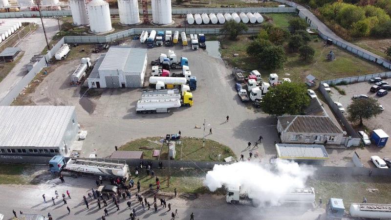 "Співробітників на територію не пускають - все майно в руках рейдерів, які не знайомі з технікою безпеки, палять фаєри, курять біля бензовозів. У разі пожежі вони перетворяться в ракети першинг, піврайону може злетіти в повітря... У Василькові був бензин і дизель, а тут ще і 8 млн літрів газу", - заявив Олександр Мельничук.