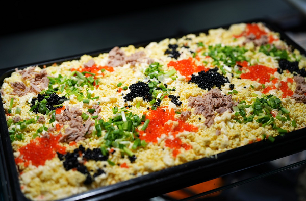 Оселедець під шубою, традиційне Олів"є (як же ж без нього?), фарширована риба, ароматна качка з яблуками, власне копчення на вільховій тирсі та розкішні десерти – все це в асортименті готових страв мережі.