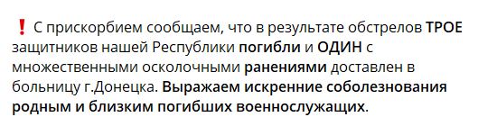 Бойовики зі свого боку підтвердили загибель трьох і поранення одного окупанта. Бойовик, який вижив, був доставлений в лікарню Донецька.