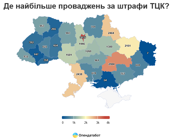 За підрахунками, щомісяця ТЦК відкривали в середньому по 4,7 тисячі нових проваджень. Рекордну кількість виписали у квітні – 5,68 тис. штрафів.