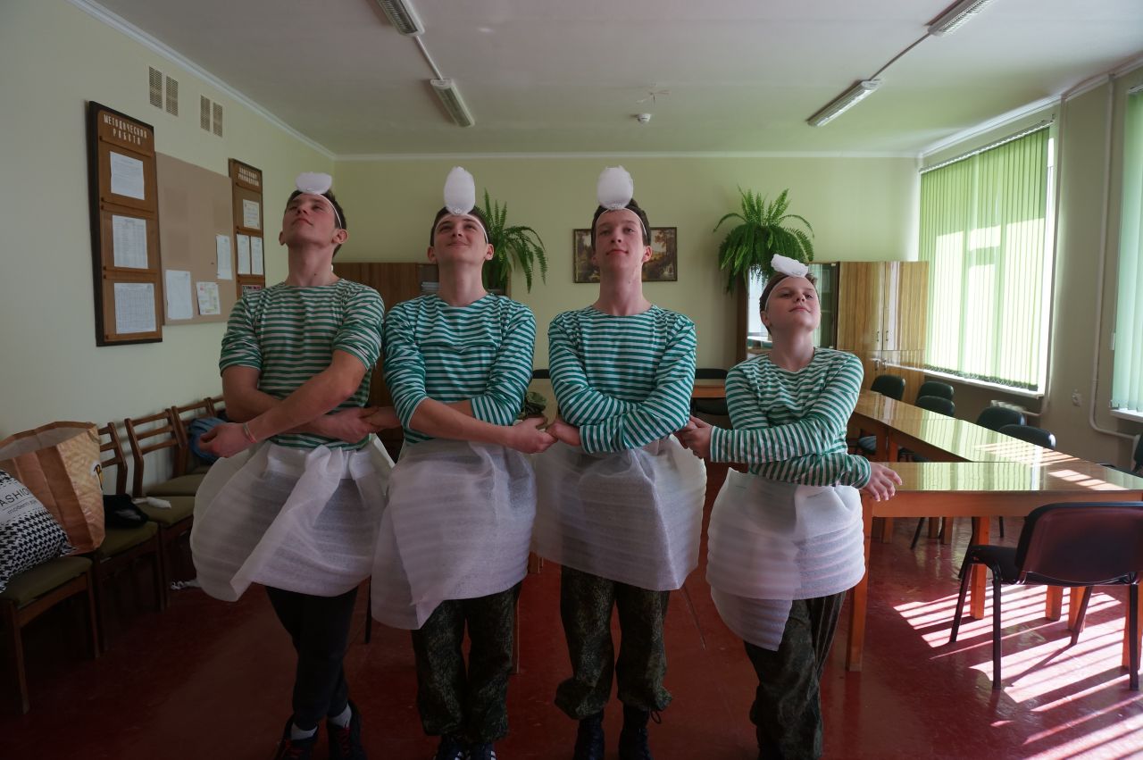 Дійсно, на деяких з них можна побачити дівчат, на яких надіто костюми у військовому стилі, а хлопці танцюють танець, надівши імпровізовані спідниці.