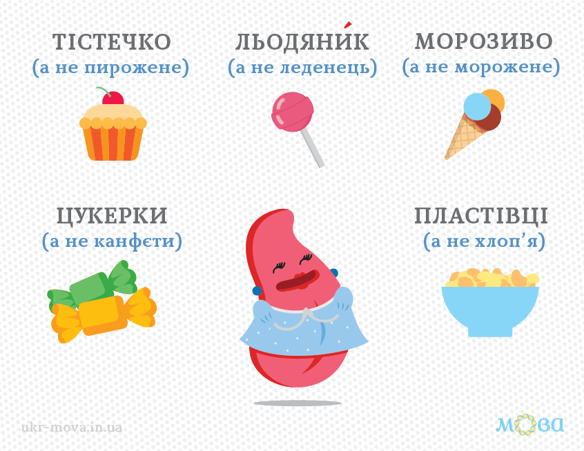 Через віковий вплив росіян на багату українську мову, немало слів солов'їної паплюжать у розмові, не знаючи як правильно вжити те чи інше слово та говорячи калькою. Зокрема, під влив зросійщення потрапили та назви солодощів.