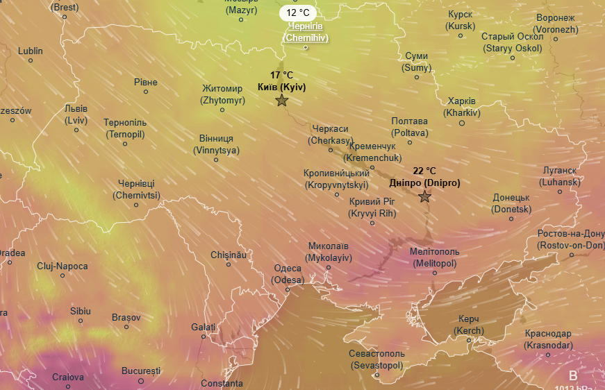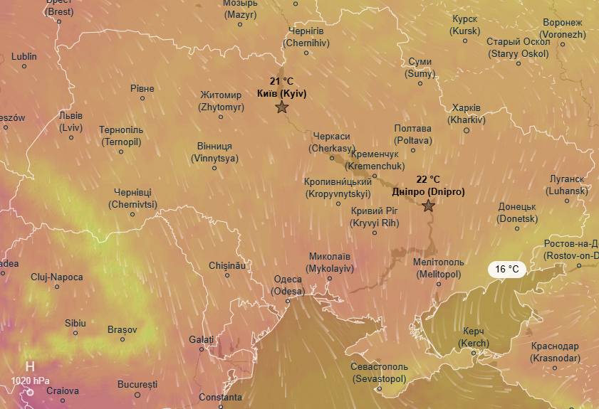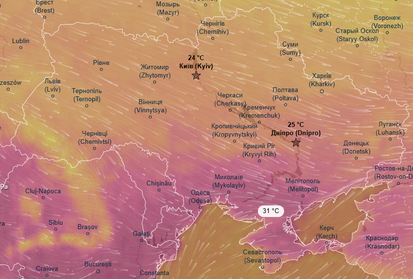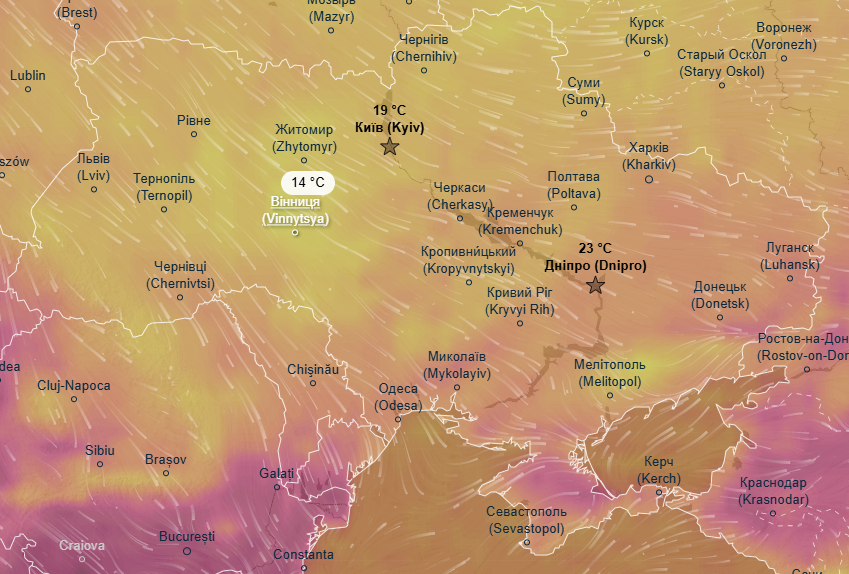 Такий прогноз дали синоптики метеорадара Ventusky.com.