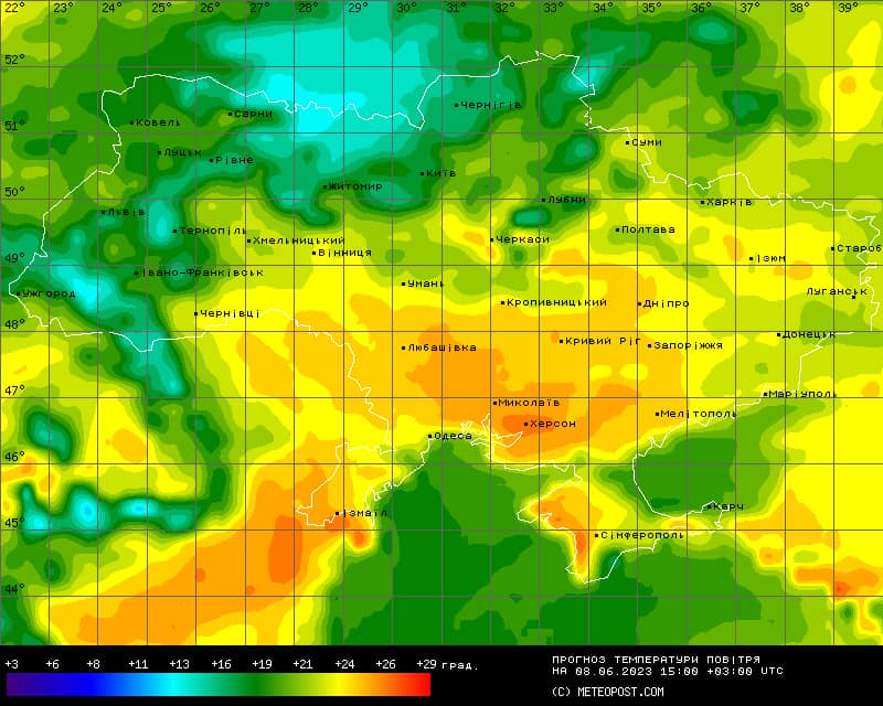А от температура повітря в Україні розділиться: на заході та півночі очікується свіжа погода, +19+24 градуси, на решті території +24+27 градусів, на Херсонщині. Миколаївщині, Одещині та в Криму +25+28 градусів.