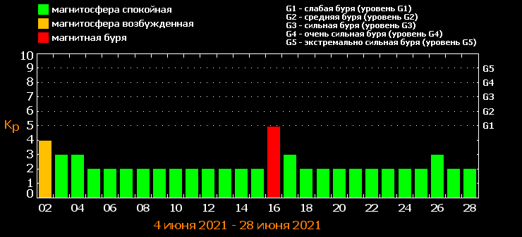 Незначні геомагнітні коливання прогнозуються також 2 і 3 червня, і не виключені 8-9 червня. Однак їх негативний вплив на самопочуття відчують тільки люди з високим рівнем метеочутливості.