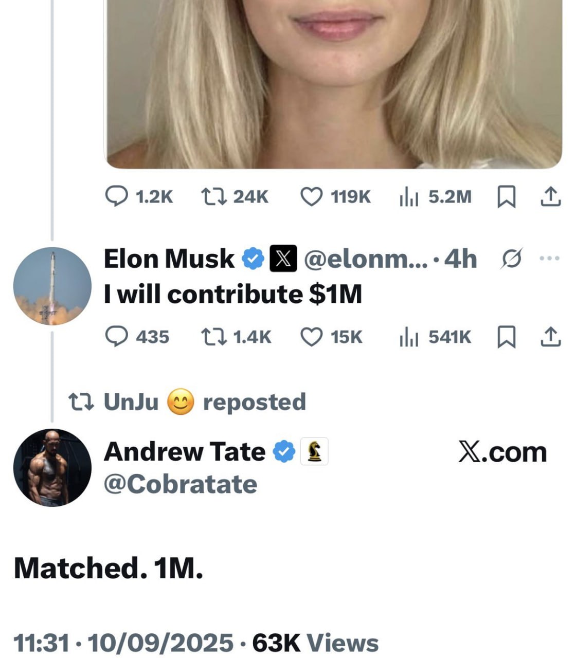 "Я внесу 1 мільйон доларів", – написав Маск.