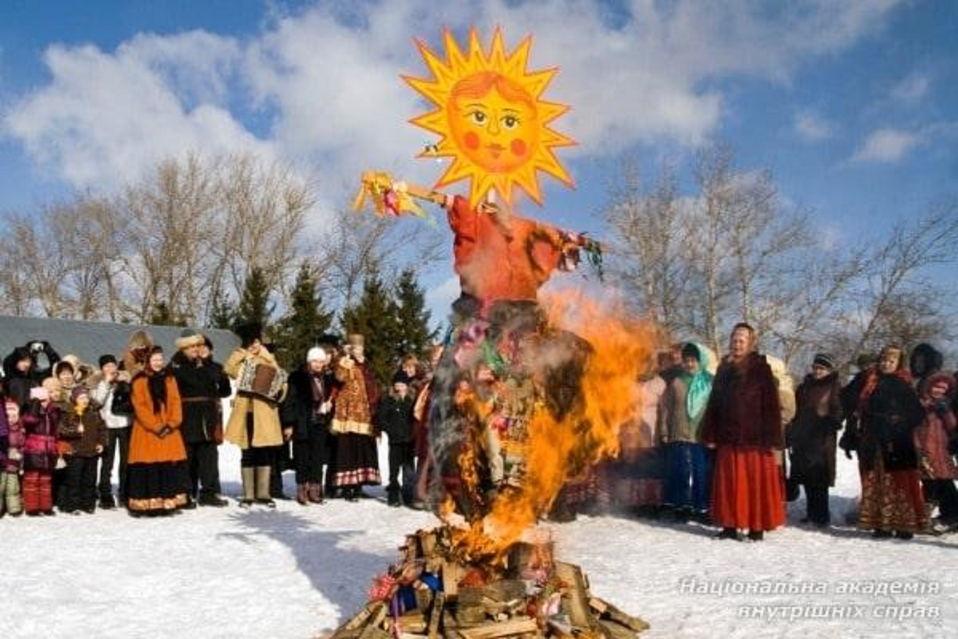 Особливо популярними були млинці, щедро змащені маслом. Вони символізували сонце — кругле, гаряче й золоте — і уособлювали прощання із зимою та зустріч весни. Таким чином, назва відображає як гастрономічну традицію, так і символіку достатку та тепла.