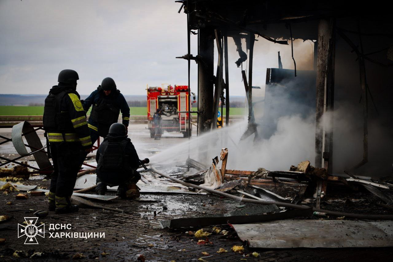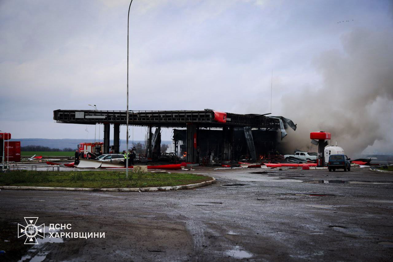 У Нововодолазькому районі після влучання в автозаправну станцію загорілися її будівлі та кілька автомобілів.