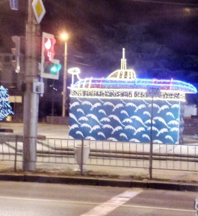 В окупованому Росією Криму, в місті Севастополь встановили конструкцію з ілюмінацією у вигляді підводного човна.