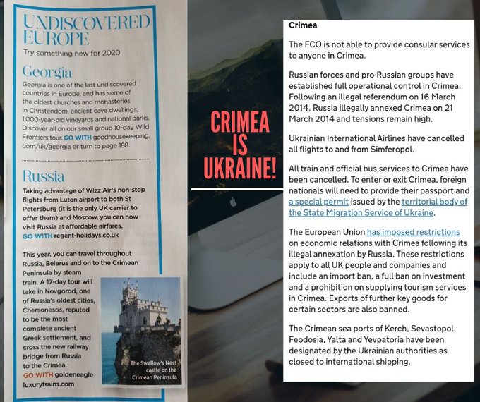 Британський журнал Good Housekeeping опублікував в своєму матеріалі інформацію про анексуваний Крим в розділі "Росія".
