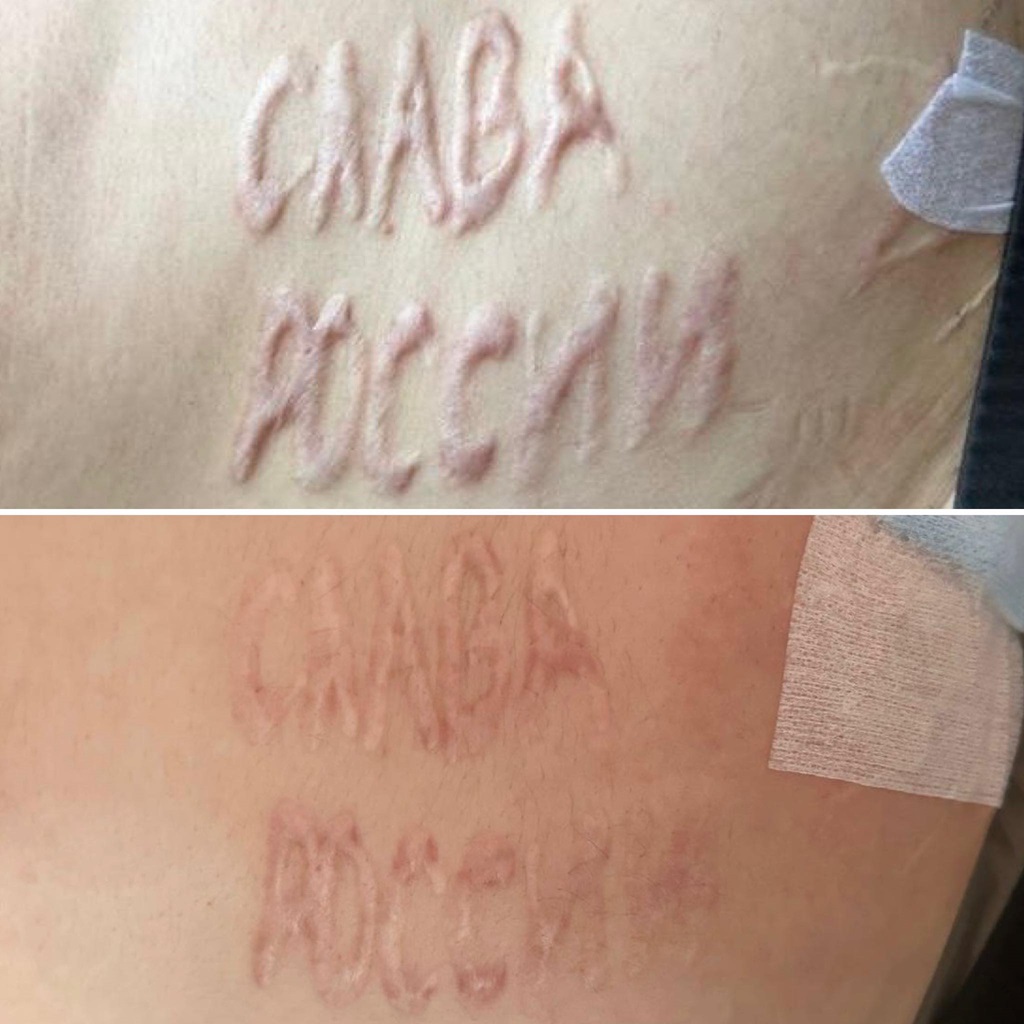 Медики показали проміжний результат лікування українського захисника Андрія, якому російський лікар випалив на тілі напис "Слава Росії". Наразі напис суттєво менш помітний.