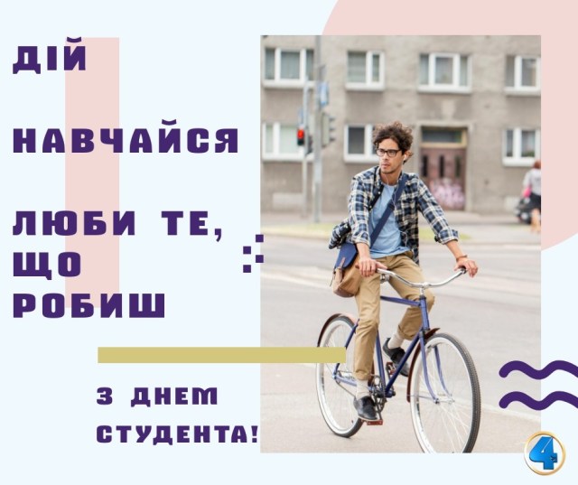 Вітаю з Міжнародним днем студентів. Бажаю щодня перемагати лінь та нудьгу. Бажаю з кожною лекцією ставати на крок ближче до мрії. Бажаю освоювати обрану професію у повній мірі. Бажаю мати у своєму житті багато добрих друзів та безліч можливостей для створення власного щастя.
