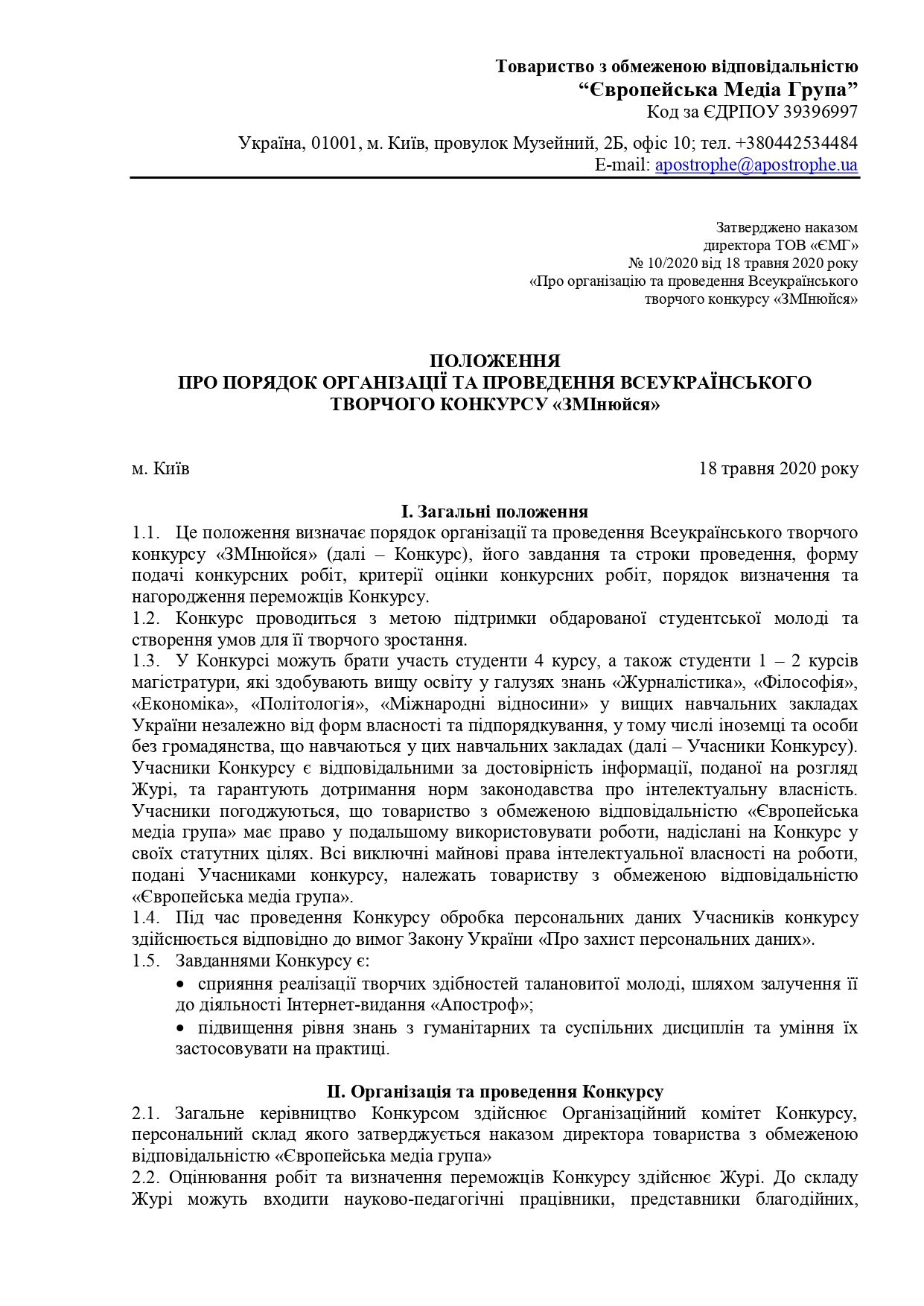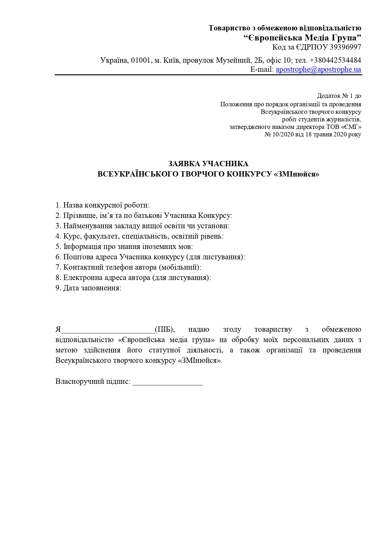 Хочеш стати частиною команди "Апострофа"? Наше інтернет-видання продовжує конкурс "ЗМІнюйся". Він проводиться серед студентів, які здобувають вищу освіту у галузях знань "Журналістика", "Філософія", "Економіка", "Політологія" та "Міжнародні відносини", з метою їх творчого зростання.
