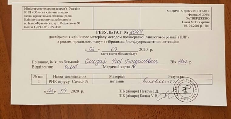 В четвер, 2 липня, у міського голови Коломиї (Івано-Франківська область) Ігоря Слюзара результати тесту підтвердили зараження коронавірусом, хвороба проходить безсимптомно.