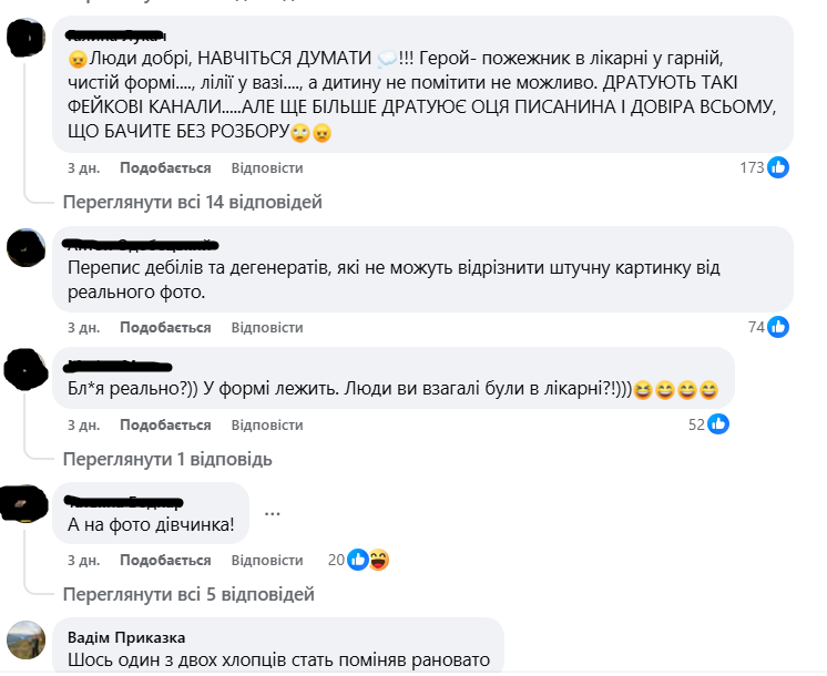 Однак це жодним чином не заважає українцям коментувати і репостити фейковий допис і фейкове фото.