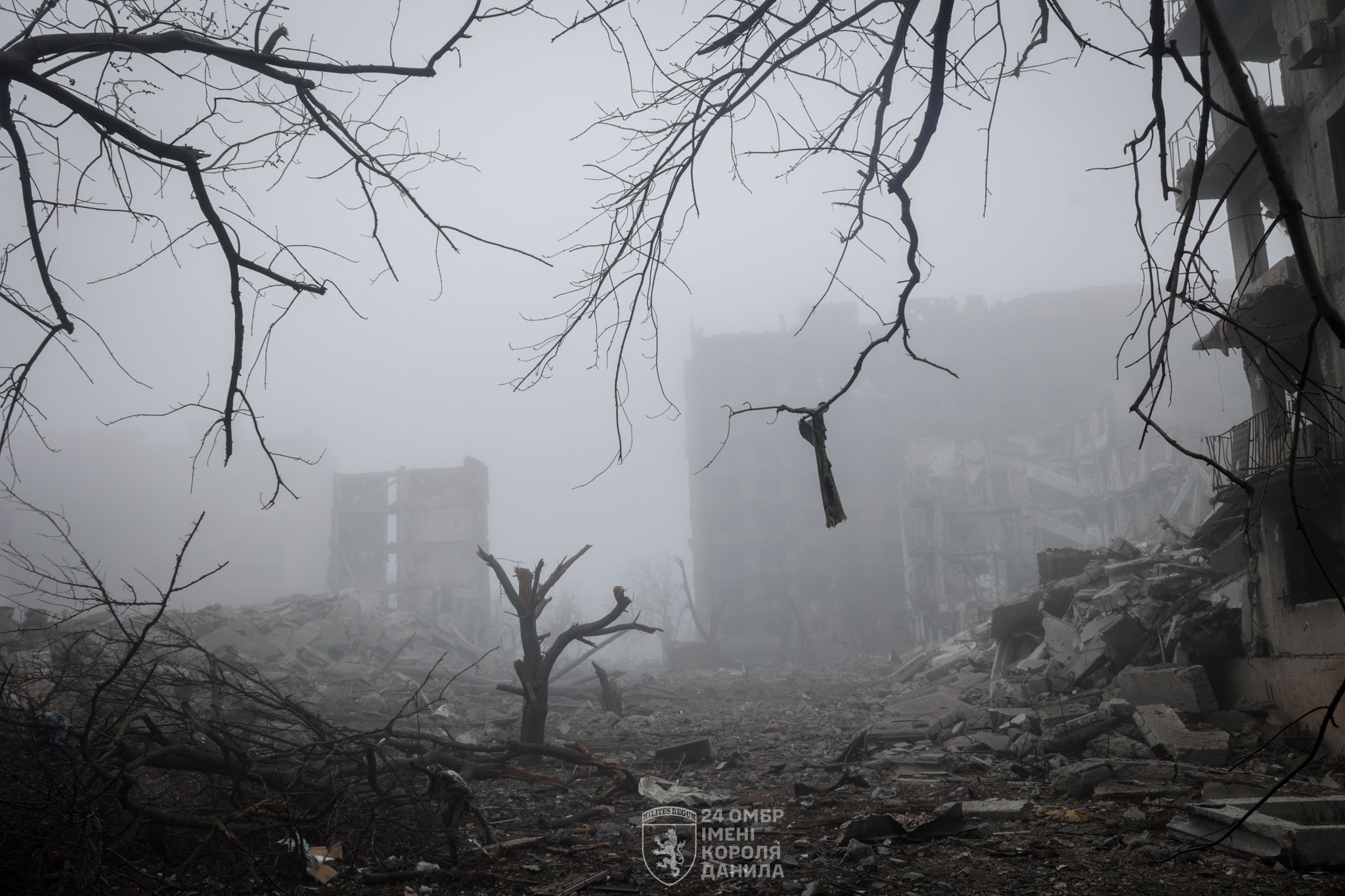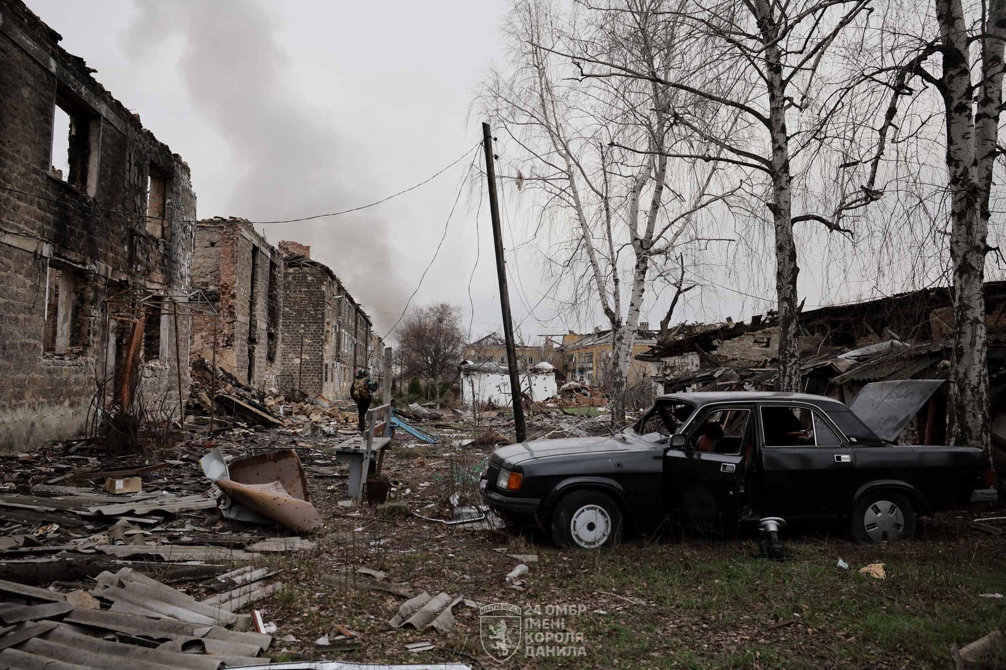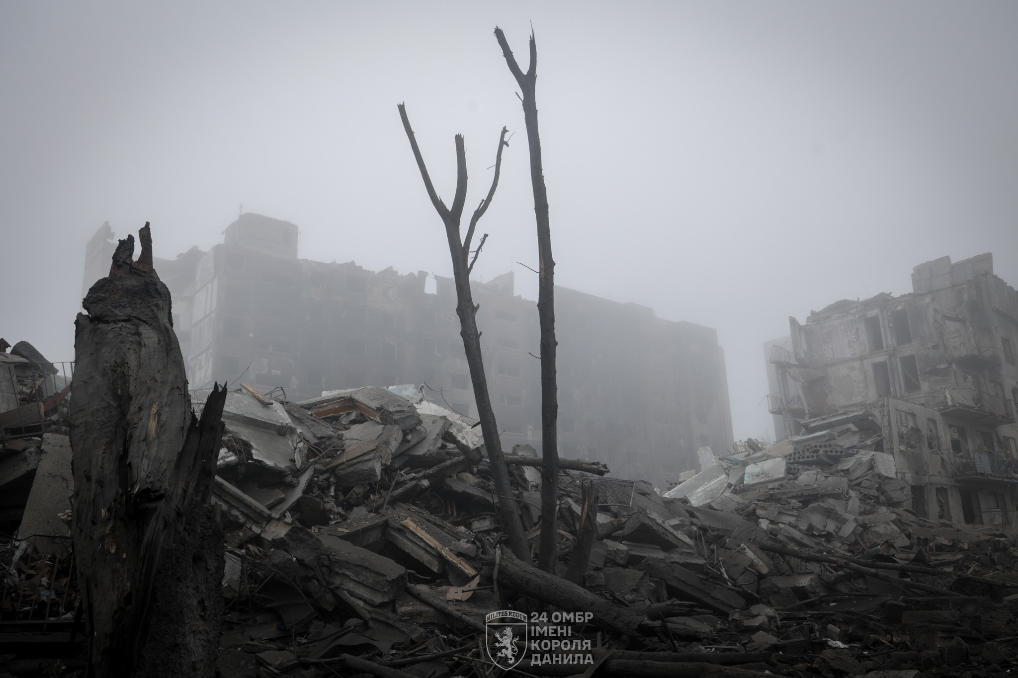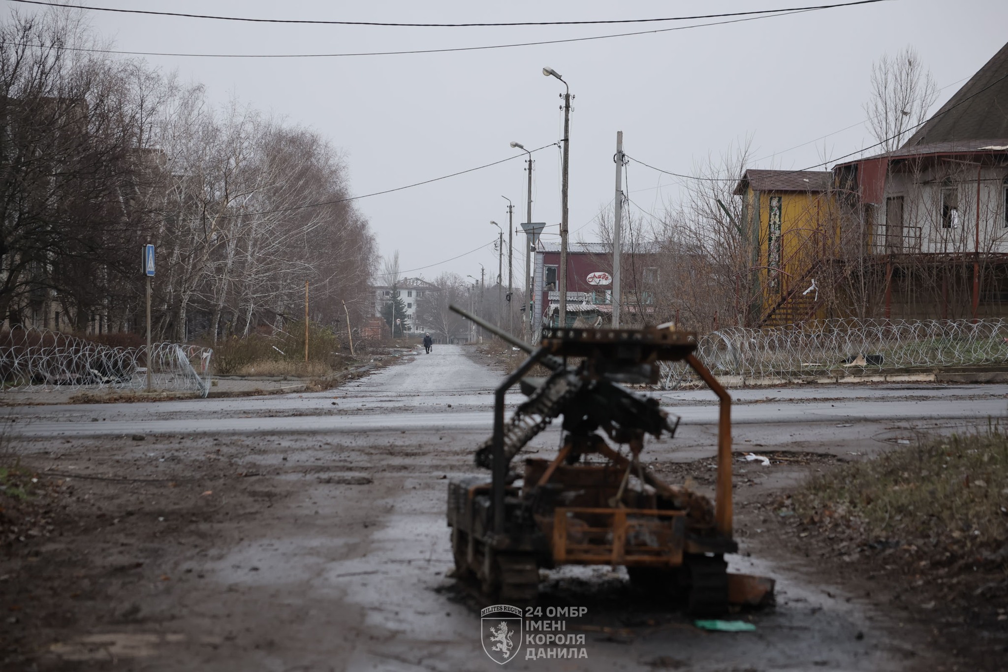 24 механізована бригада імені короля Данила поділилася кадрами з Костянтинівки Донецької області, що перебуває під суцільним вогнем російської окупаційної армії.