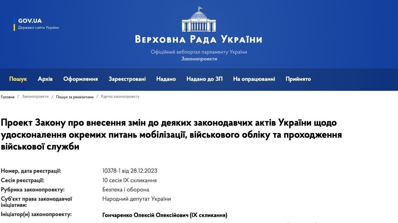 Про це йдеться в законопроекті №10378-1 від 28.12.2023.