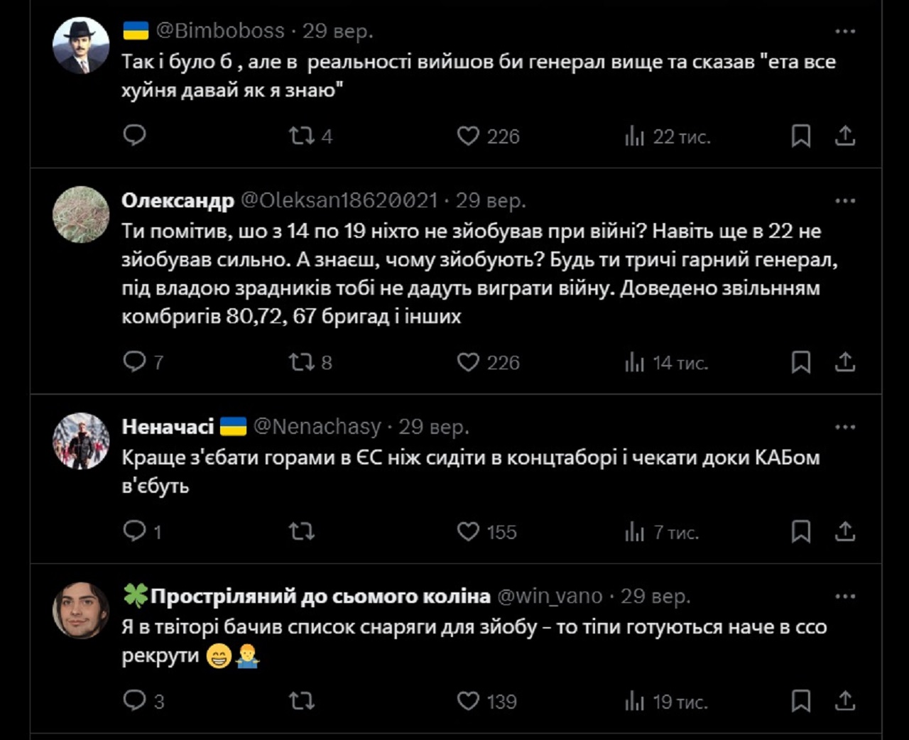 "Найшов в телеграмі групу про з**бування за кордон через гори, ліс і Тису, тупо завис на пару годин там. Просто золото, ці люди з таким рівнем організації могли б думаю стать ГЕНЕРАЛАМИ і виграть війну", - написав військовий.