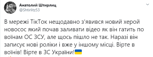 Ролик опублікував в Twitter український офіцер Анатолій Штефан (Штірліц).