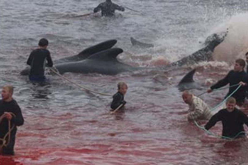 Фарерці полюють в середньому на 800 китів на рік. Всі мисливці повинні мати мисливський квиток. Члени "Блакитної планети" засудили цю традицію і заявили, що тварини були "по-звірячому і безжально вбиті".