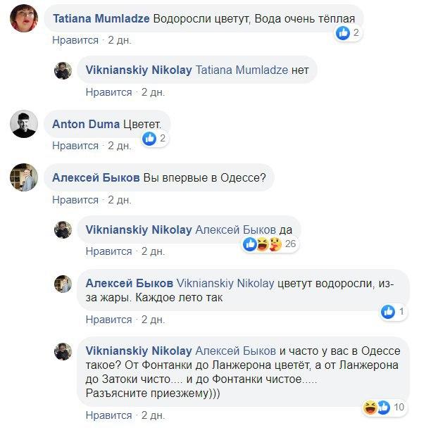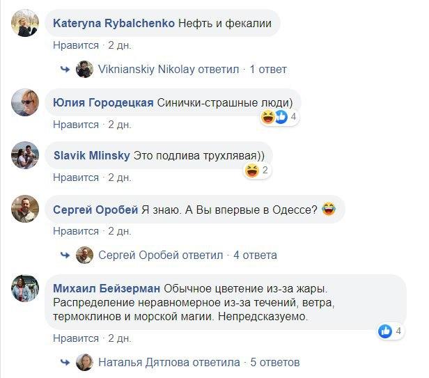 У коментарях українці почали активно коментувати те, що відбувається, багато пишуть, що це через спеку водорості цвітуть, тому такий ефект.