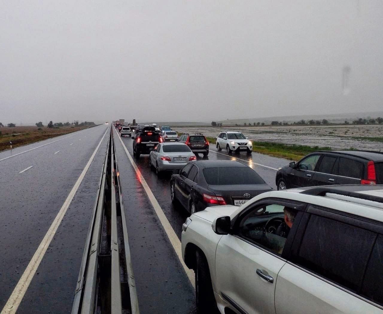 В результаті затоплення траси виникла багатокілометрова пробка.