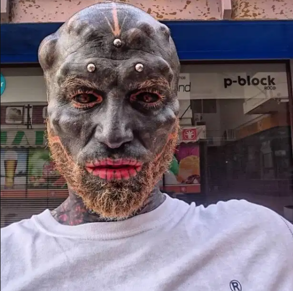 Крім того, він наважився зробити собі татуювання очних яблук, хоча чорнила можуть осліпити, вставив шкірні імплантати в обличчя, що надає його шкірі більш рельєфну текстуру. Тепер у нього на лобі шишки, як у рептилій, і різкі лінії на вилицях.