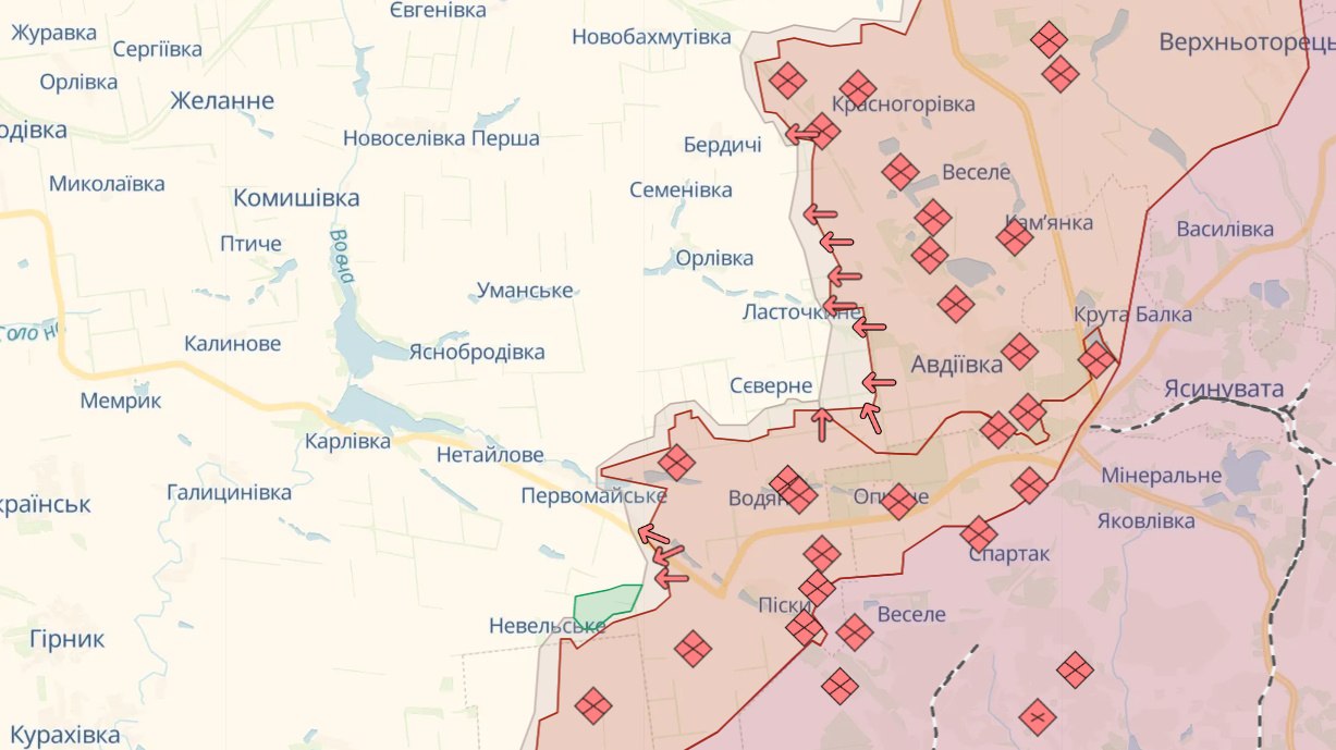 Російські окупаційні війська продовжують рухатися далі після виходу українських сил з Авдіївки Донецької області.