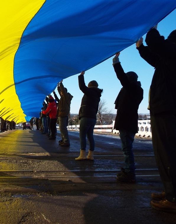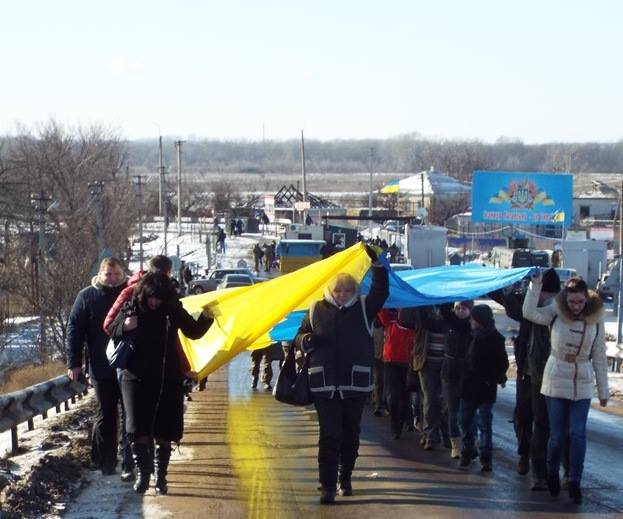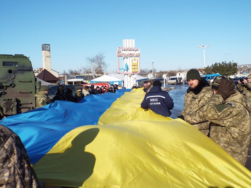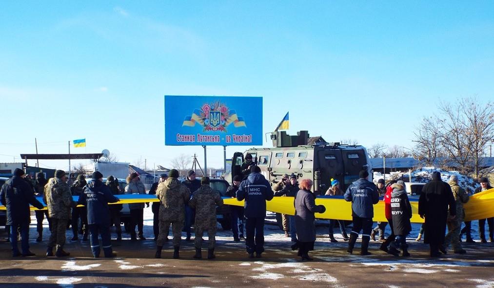 На контрольному пункті в'їзду-виїзду "Станиця Луганська" на честь Дня Соборності України відбулася акція, у ході якої її учасники розгорнули 40-метровий прапор України.