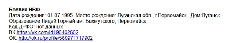 Бойовика "Кочегара" включено в базу "Миротворець", там зазначено, що він 1995 року народження і до агресії Росії проживав в місті Первомайськ Луганської області. Там у нього залишилися мати і сестра.