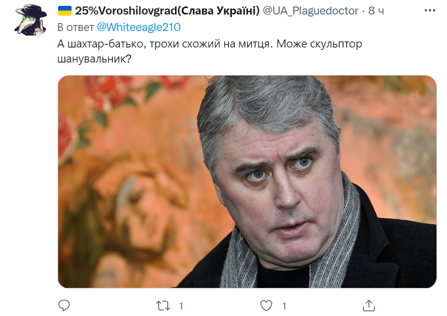 Також вказали на схожість з художником і письменником Лесем Подерев'янським, а також - відомим пам'ятником Оленці в Росії.