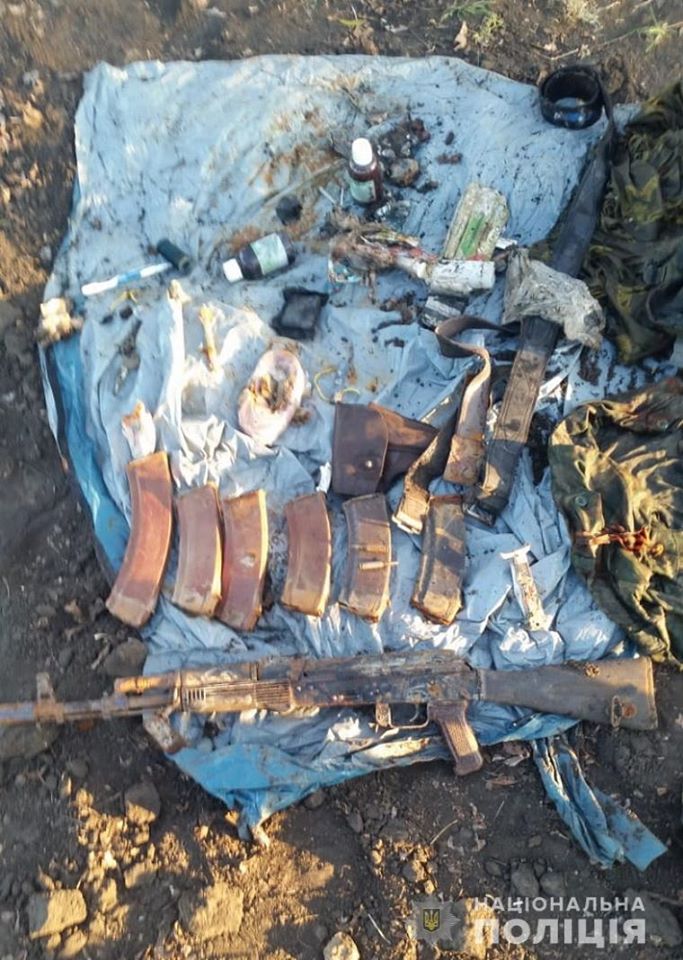 У схованці зберігалися автомат АК-74 калібру 5,45 мм і близько 200 патронів до нього, гранати Ф-1 і РГ-42.
