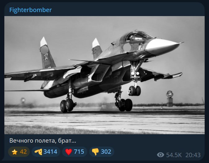 "Вічного польоту, брате", — написав Ілля Туманов, автор пропагандистського каналу "Fighterbomber".