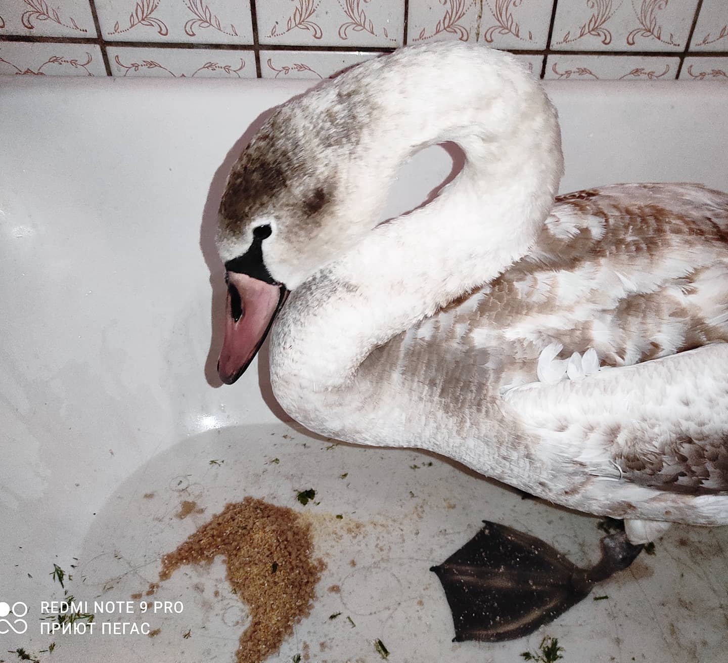 На щастя, у Мандаринки, як прозвали лебедя, немає відкритих травм ніг і крил.