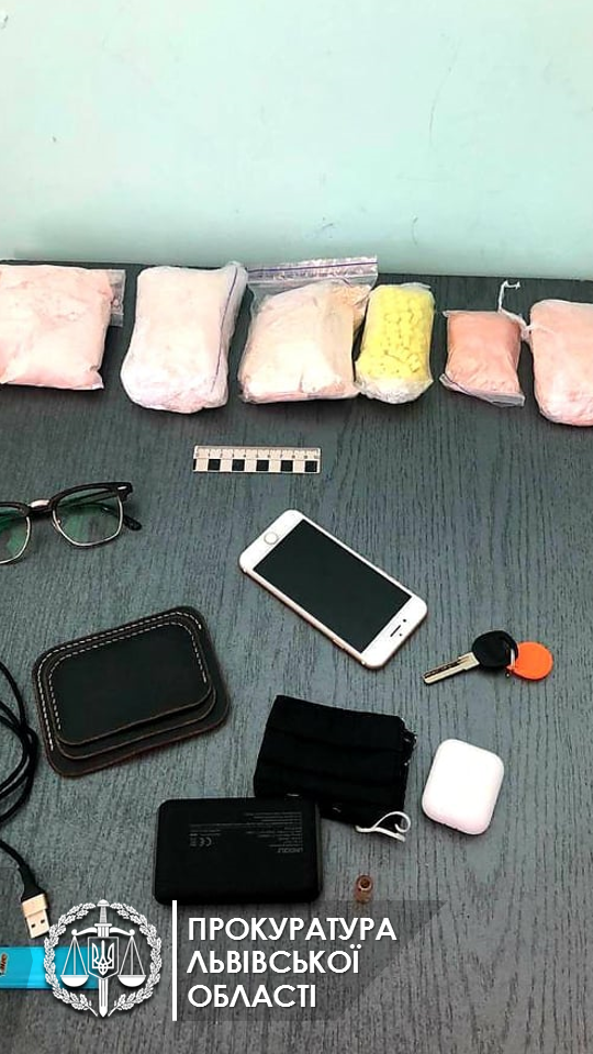 Про це повідомили на Facebook-сторінці прокуратури Львівської області, опублікувавши фото вилучених у затриманого наркотиків.