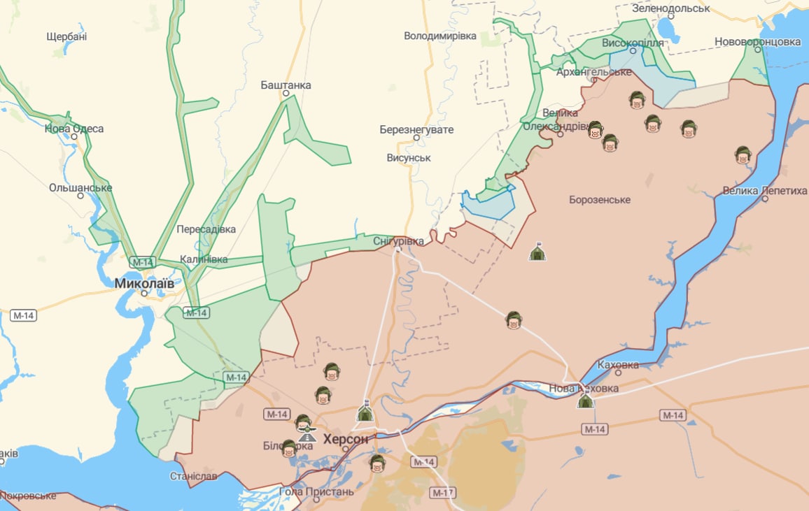 У Херсонській області підрозділи країни-окупанта затиснуті між силами оборони України, які тримають вогневий контроль над переправами і транспортними артеріями через Дніпро та правим берегом.