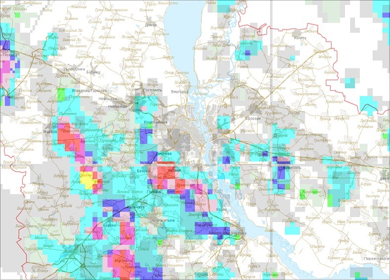 Синоптик Наталка Діденко написала в соцмережі, що в Києві буде гроза і показала карту.