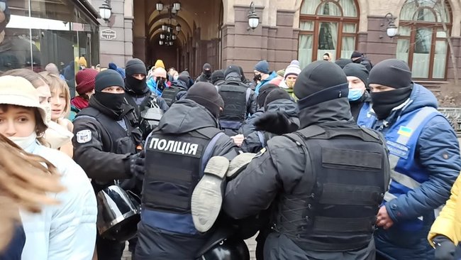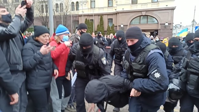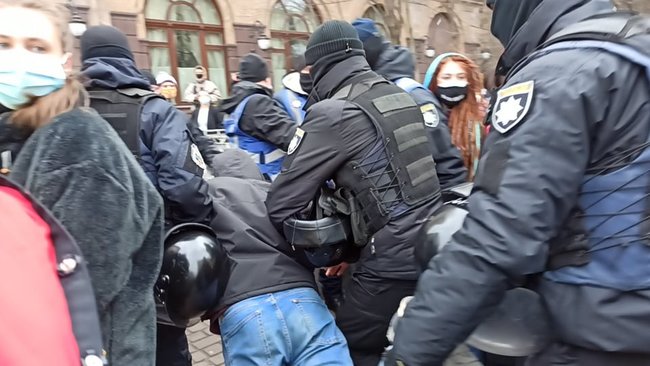 Поліцейські буквально винесли двох хлопців з натовпу під час проходження біля них Маршу жінок.