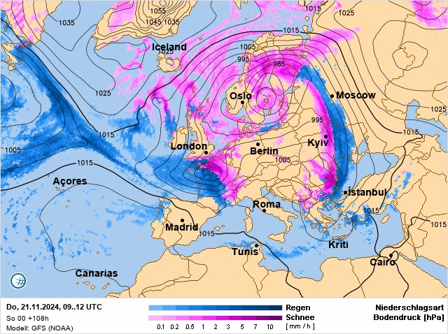 За її прогнозом, 21 листопада на більшій частині території України пошириться холодне повітря слідом за холодним атмосферним фронтом, згодом холод накриє і південь зі сходом. Похолодання принесе дощі зі снігом і сильний вітер, налипання мокрого снігу.