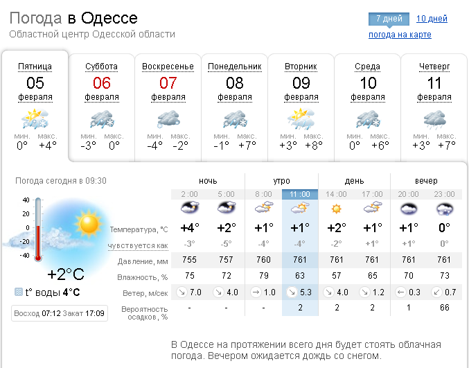 Ближче до ночі в Одесі піде сніг, який буде йти всю наступну добу. Північно-західний штормовий вітер з ранку ще буде активний, але вже піде на спад і до вечора повністю вщухне.